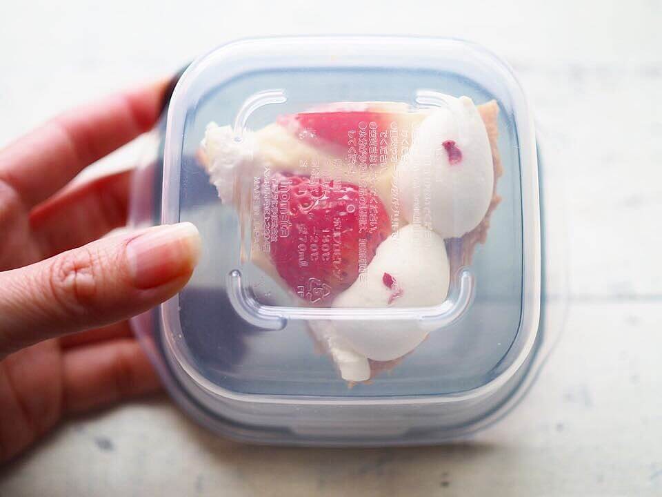 冷蔵庫でもコンパクトに収納できて、スポンジやクリームが乾燥してパサパサになってしまうのを防げます♪