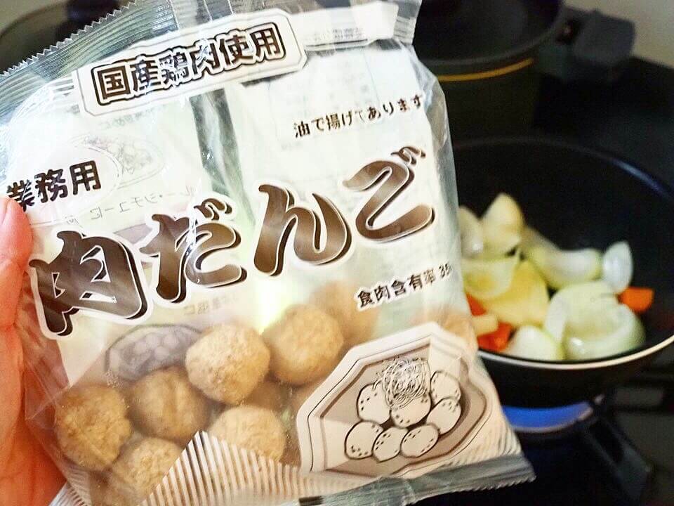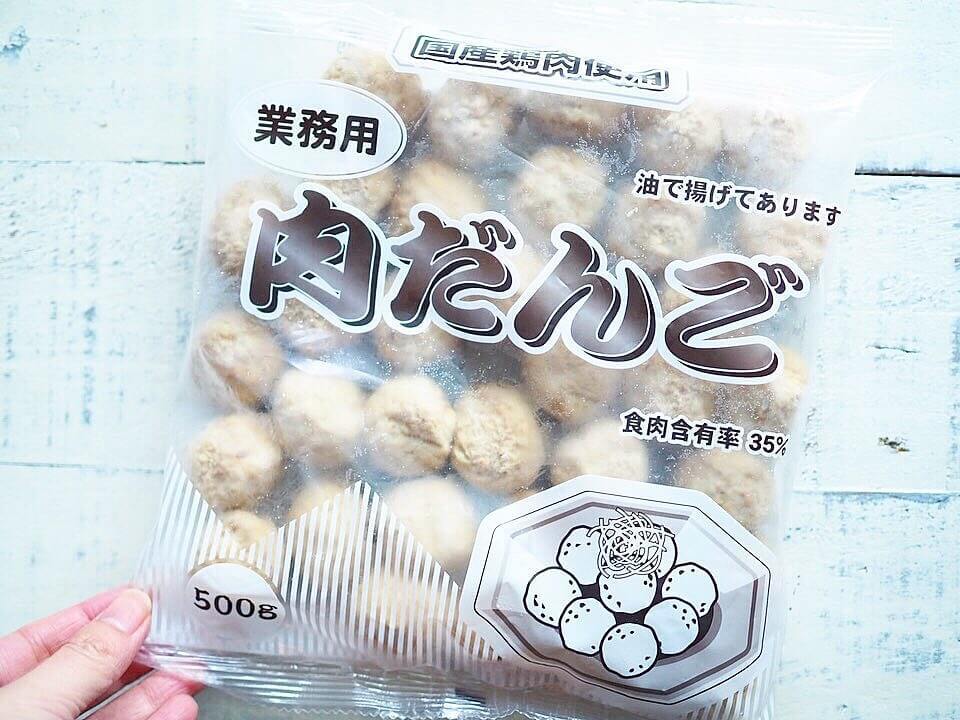 国産鶏肉使用の、油で揚げてある状態の肉だんごが、たっぷり冷凍されてなんと500g入りで160円(税抜)という衝撃のプチプラなんです……!