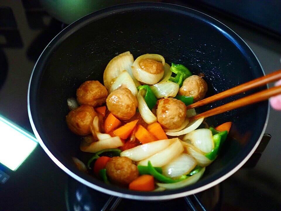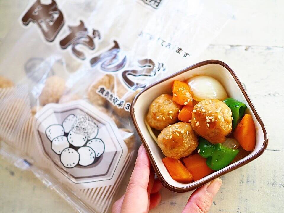 酢豚の材料で、豚肉を肉団子に置きかえると生肉よりも調理の手間も省けて時短になりますよ。