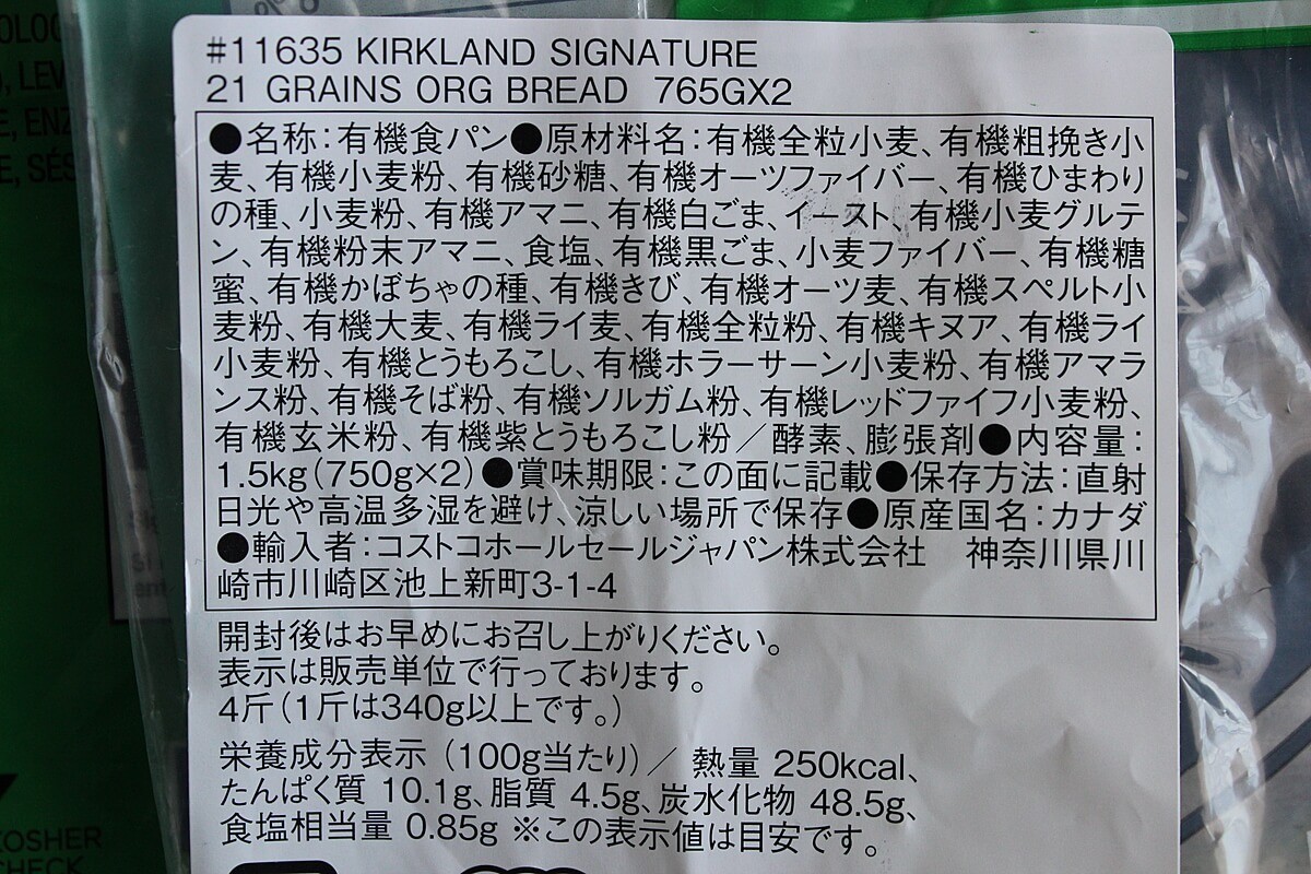 そしてその名の通り21穀入っており、すべての材料が有機です。