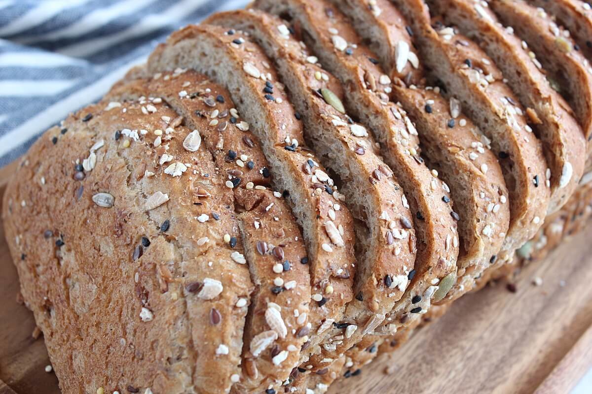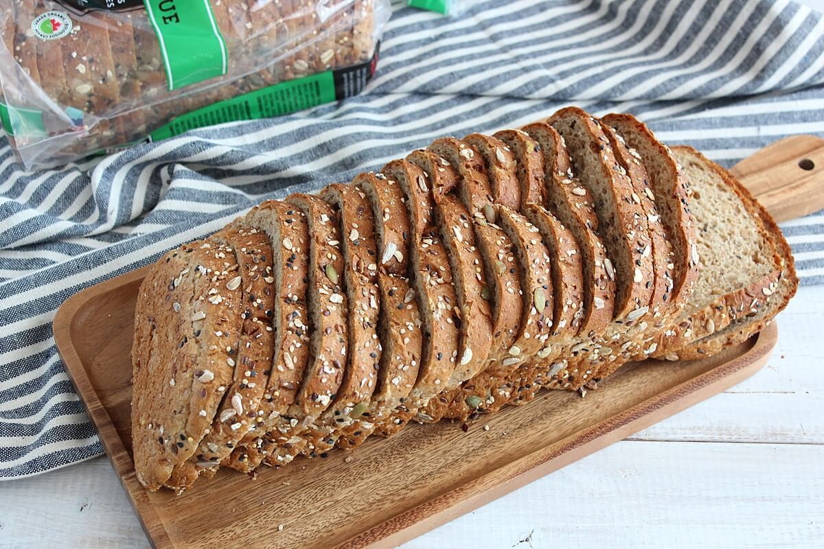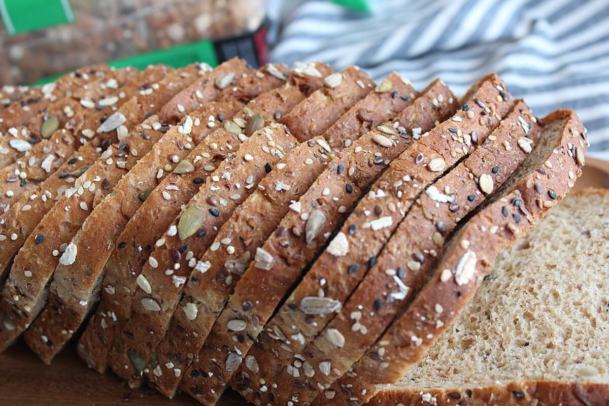 全粒小麦、粗挽き小麦、小麦粉、アマニ、白ごま、小麦グルテン、粉末アマニ、黒ゴマ、かぼちゃの種、オーツ麦、スペルト小麦粉、大麦、ライ麦、全粒粉、キヌア、ラインス粉、そば粉、ソルガム粉、レッドファイブ小麦粉、玄米粉、トウモロコシ粉で21穀です。