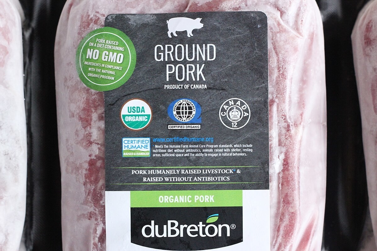 オーガニックポークとは「遺伝子組み換え作物や動物の副産物を含まない有機食品を摂取していて、抗生物質も与えていない 」と、あります。