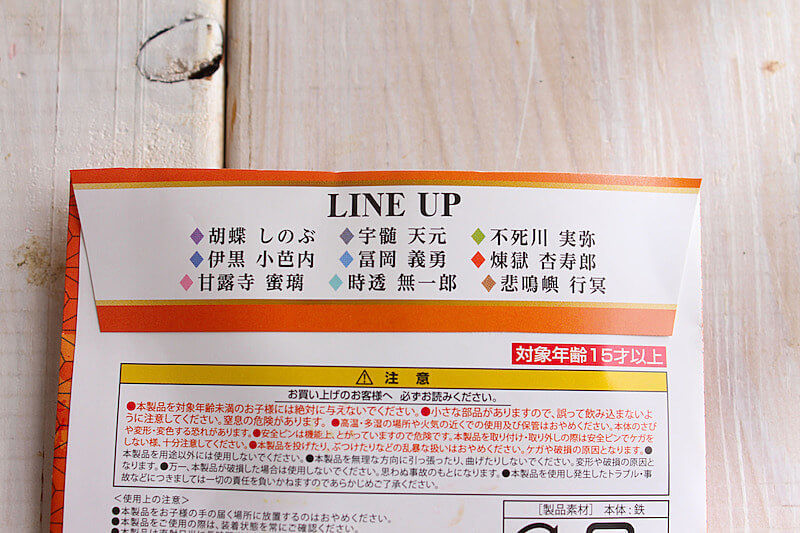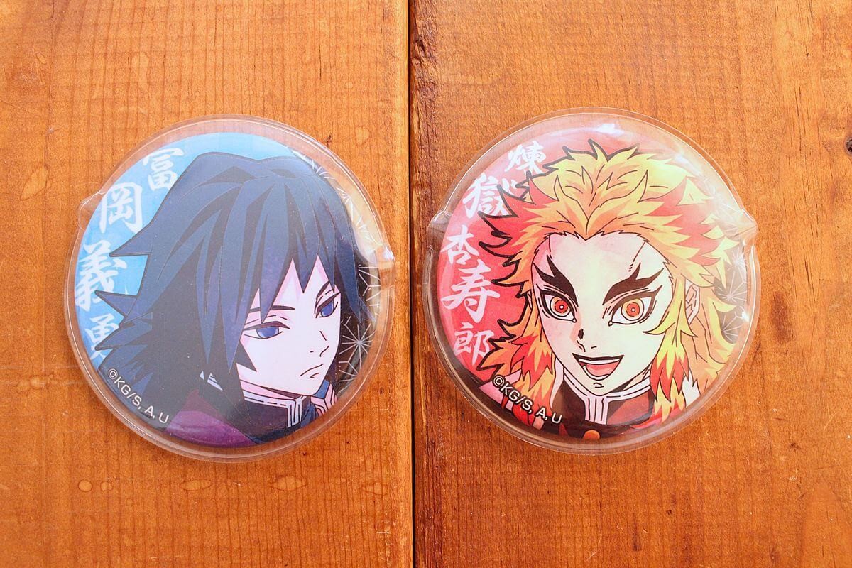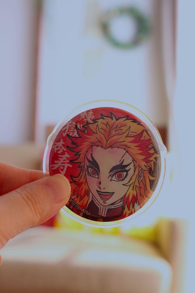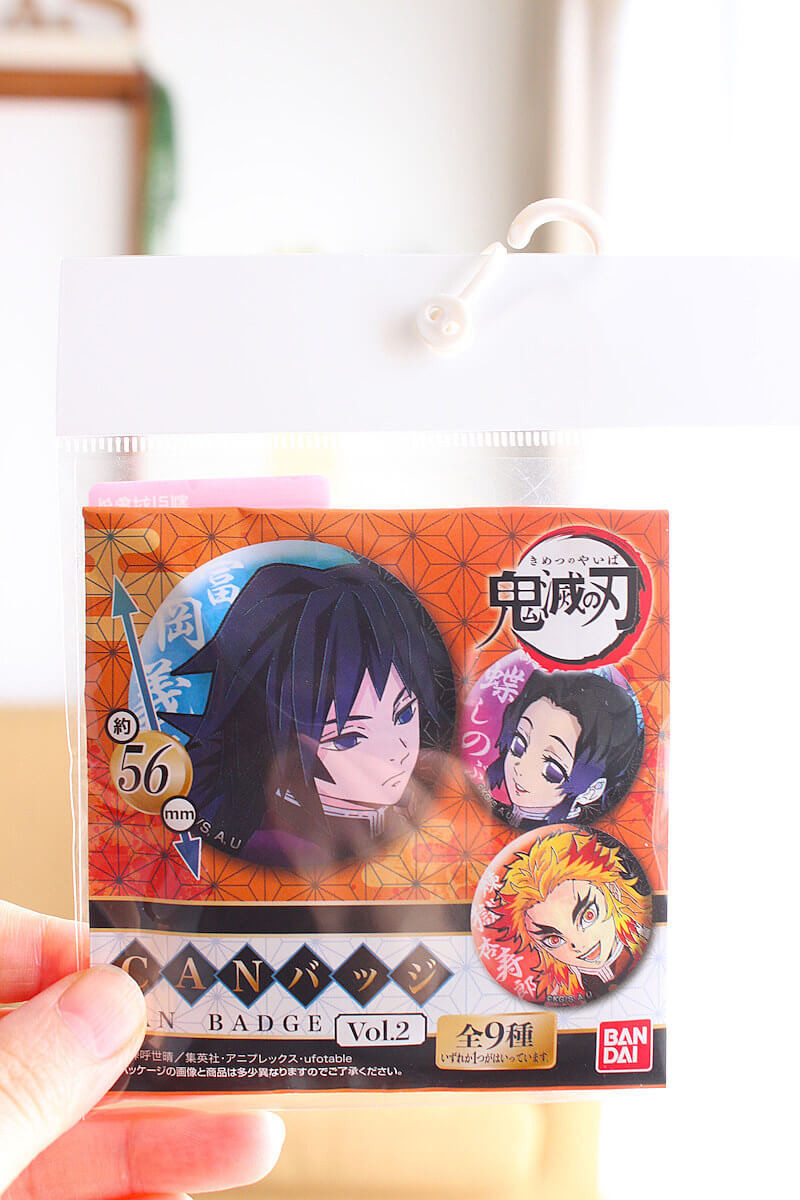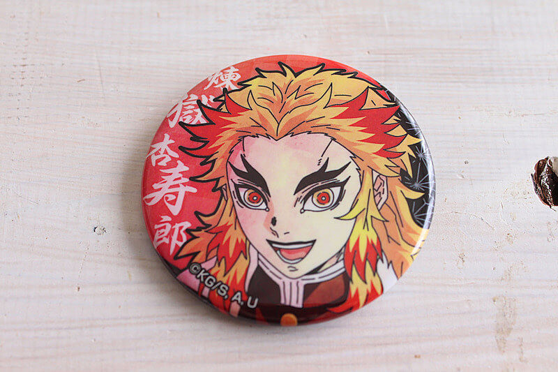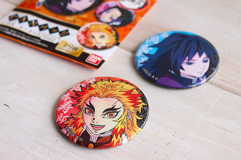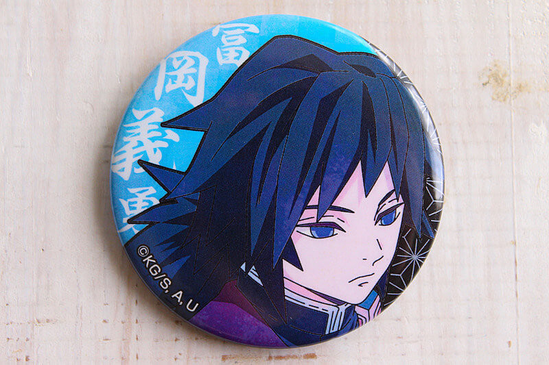 鬼を倒す「鬼殺隊」とよばれる隊士たちのなかでも、最高階級の9人は「柱」とよばれています。こちらの缶バッジには、その「柱」の中のキャラが入っているもの。