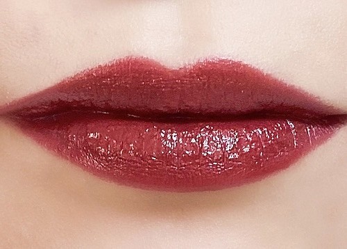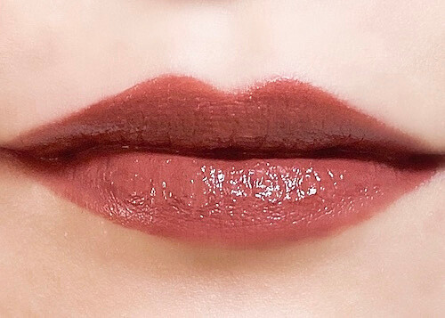 薄めに塗ると透け感があり、ナチュラルな印象。見た目ほどブラウン感がなく、どんな場でも塗っていけそうなベーシックかつ上品な口元になります。