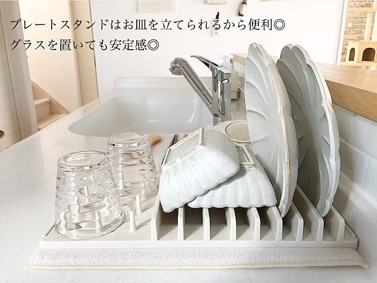 そして、ニトリの水切りマットにはプレートスタンドがついていて、お皿やコップを立てることが出来るんです!