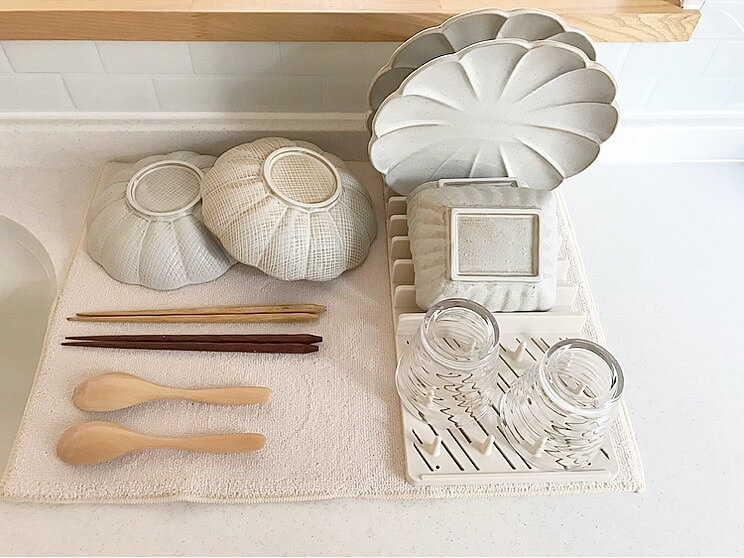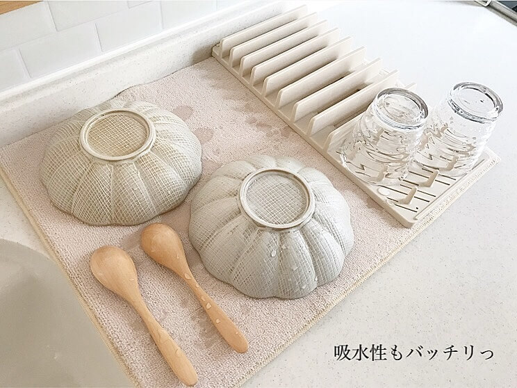 ※吸水性はバッチリですが、食器に水がたくさんついたまま置くとマットの下が濡れるのでご注意ください。