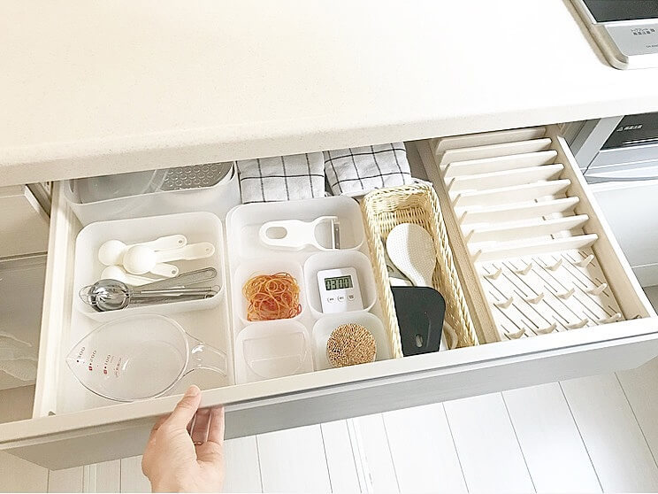 色々な形のお皿、コップ、カトラリーなどをそれぞれ置ける大きさでコンパクトなのにたくさん置けます。