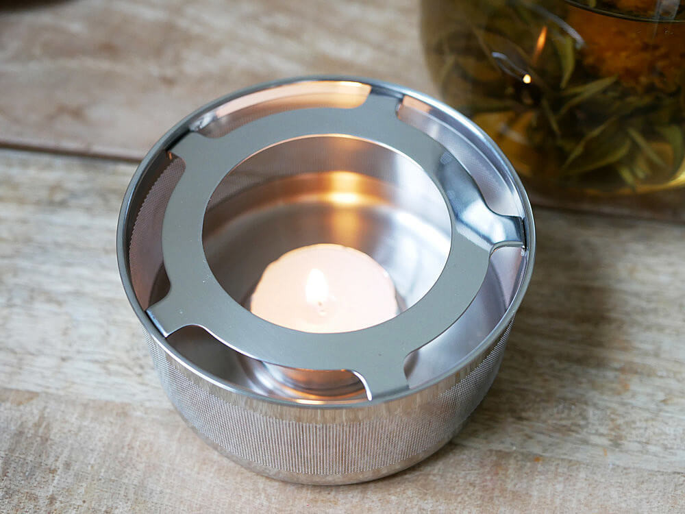 ステンレス製のメッシュから見える炎が美しく、ティーシーンを華やかに演出します。使う時は、必ず平らなところに置いて、ティーポットが安定した状態で使用します。