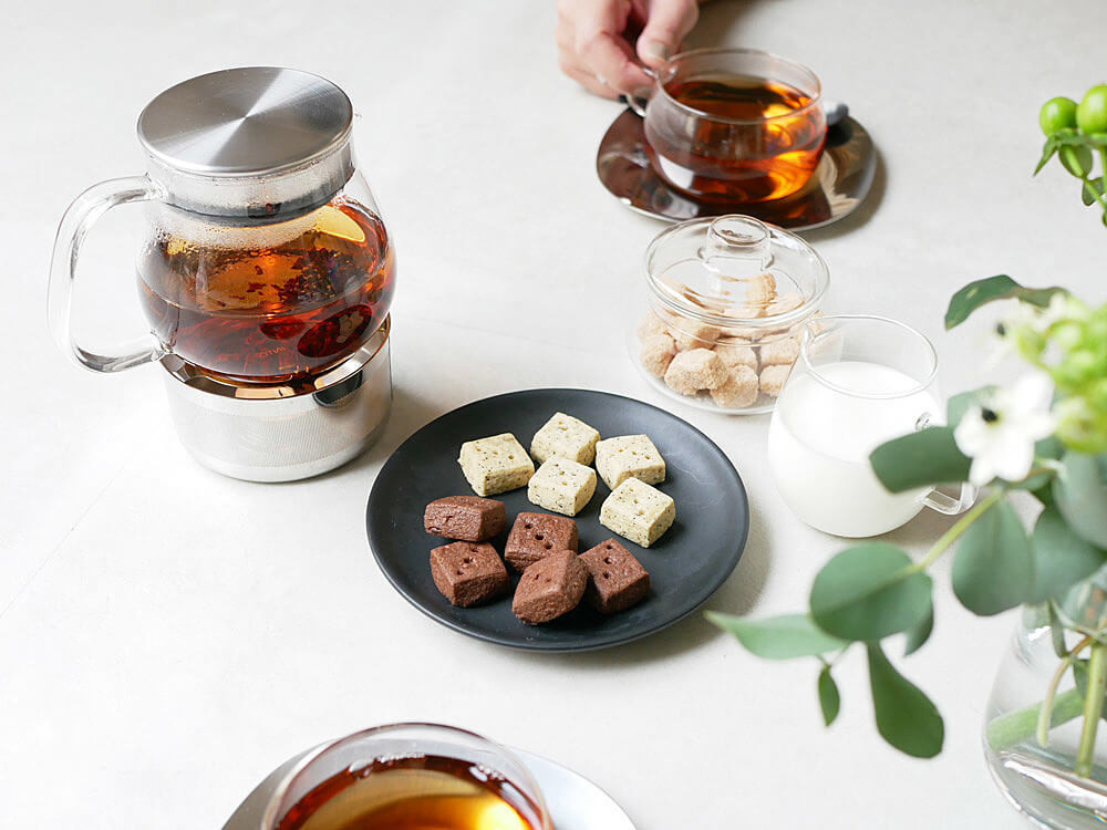 シンプルなフォルムとクリアなガラスのポットはシーンを選ばず、いつでもあなたのティータイムのお供に。