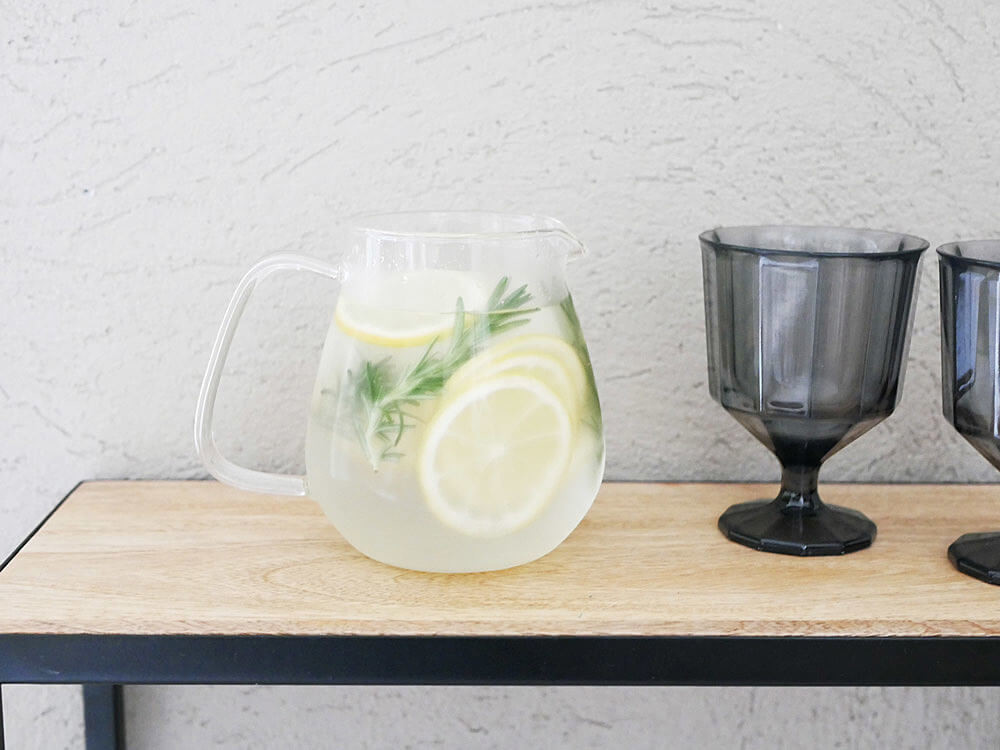 透明なので、中のレモンやハーブの鮮やかなカラーが際立ちテーブルを華やかに演出してくれます。