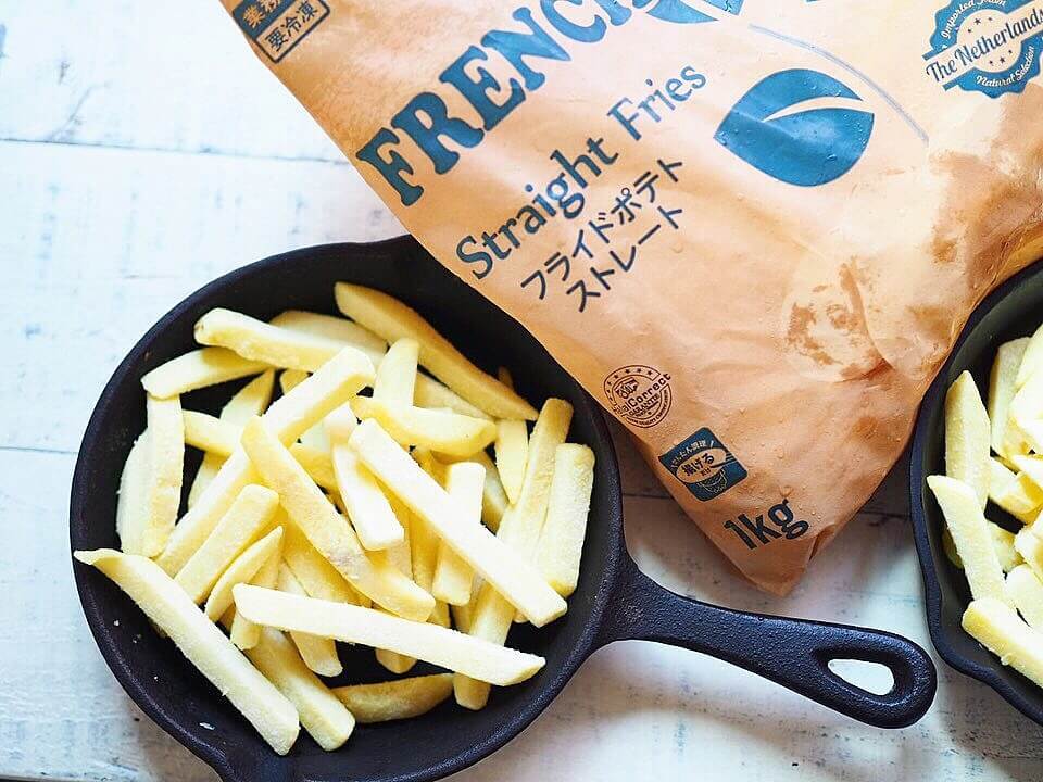 業務スーパーでは、なんと1kgも入った大容量の冷凍フライドポテトが、なんと195円(税抜)という驚愕のプチプラで購入できるんです……!