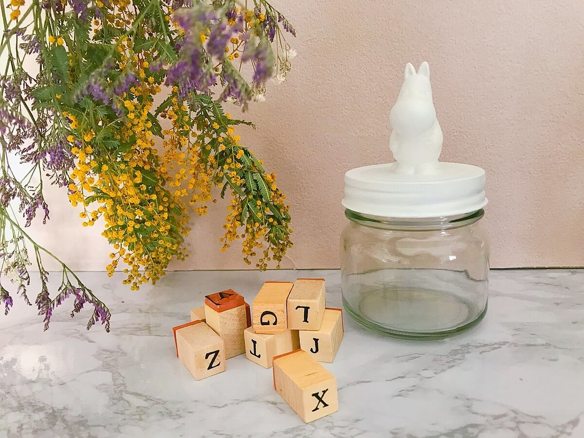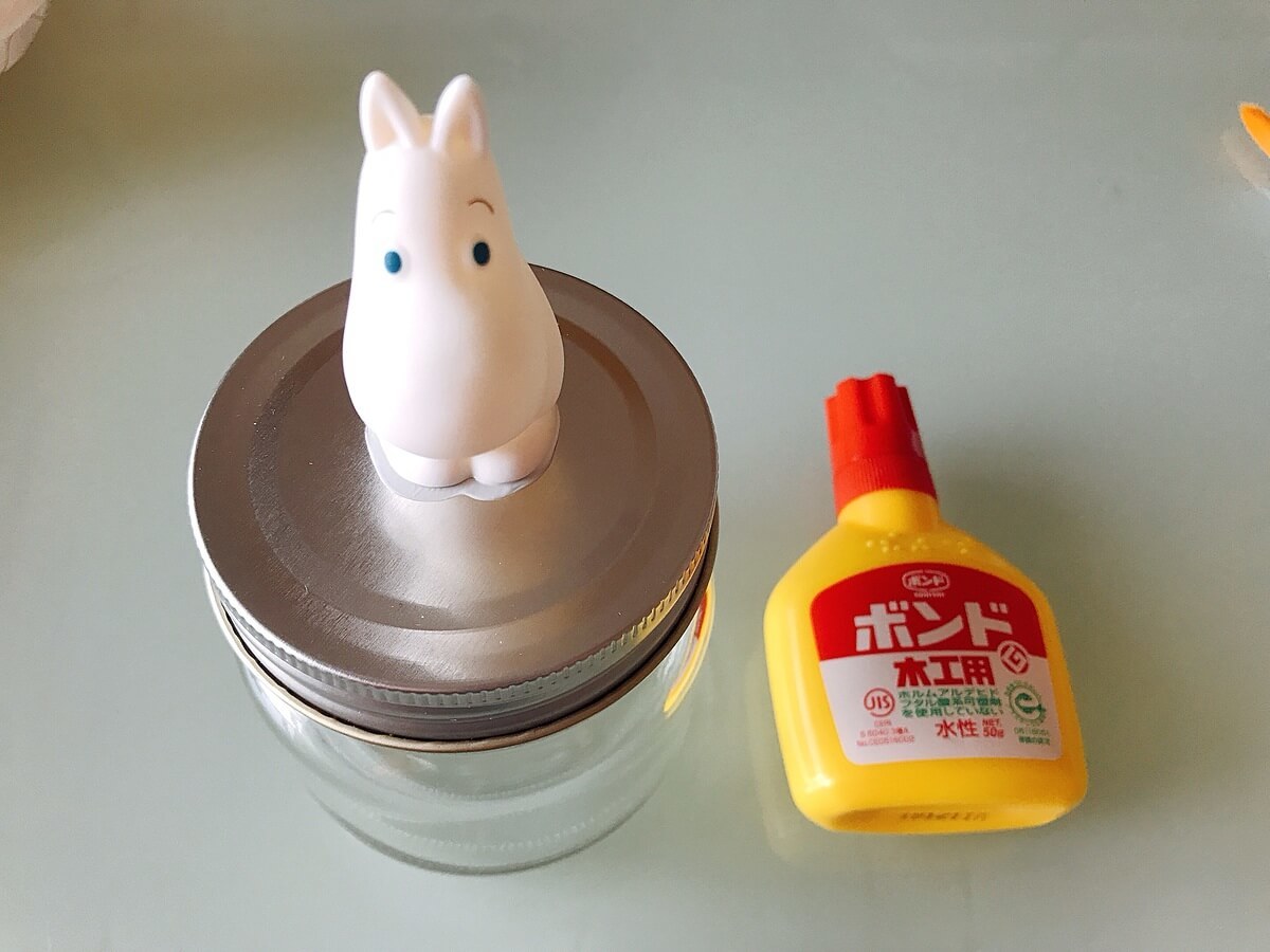 今回は家にあった北欧人気キャラクターのフィギュアを使ってみましたが、この蓋につけるものはくっつきさえすればなんでもOK! ガチャガチャでゲットした動物やキラャクターのフィギュアはもちろん、100均にあるDIY用のドアノブなんかでもいいですよ♪