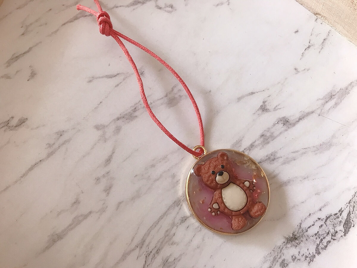 今回は家にあった、くまちゃんのボタンを載せてみました。パーツを全部レジンに閉じ込めてしまうのもありですが、液で半分だけ固めるようにしても取れずに綺麗にくっつきます。 爪楊枝などで細かい部分を埋めると仕上がりが綺麗です。