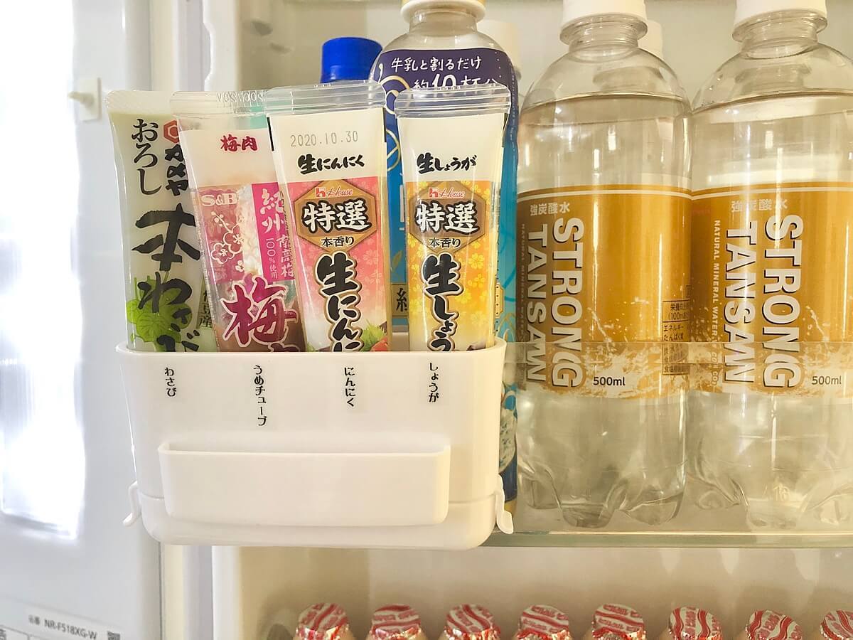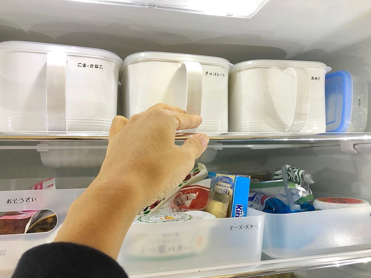 ちなみに我が家では、「味噌」「きなこ・ごま」「チョコレート」「目薬」の4つをそれぞれ収納しています。