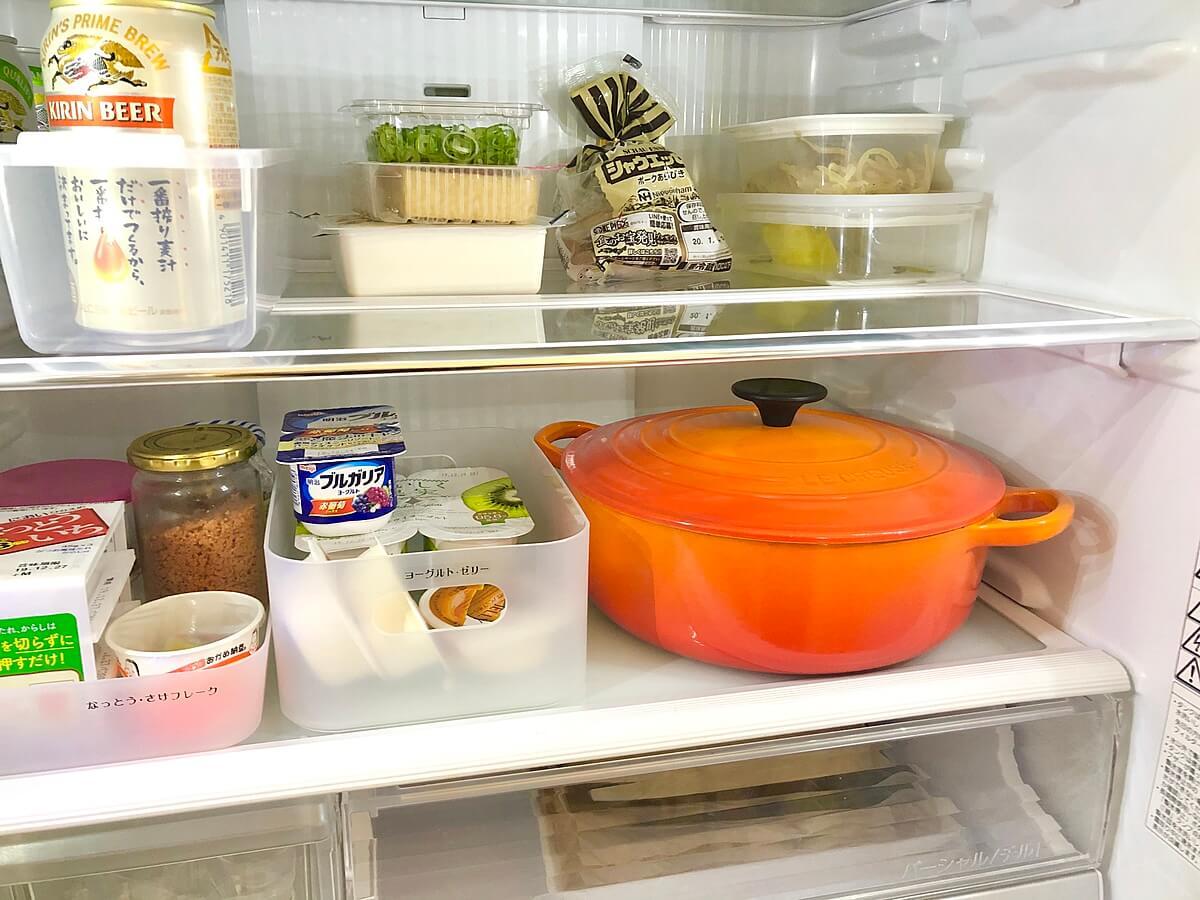 先ほどの『朝食で使うもの』、『ヨーグルト』は一番下の棚板に。