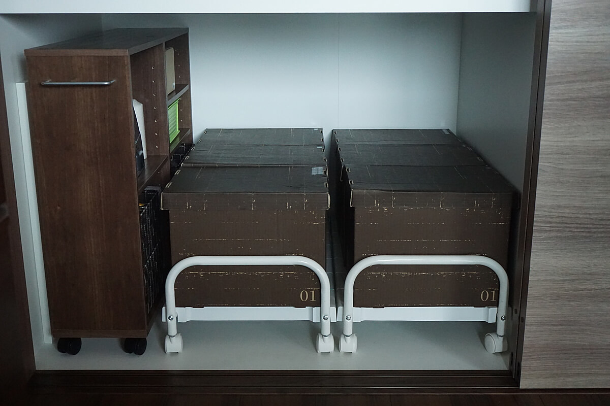 ニトリの押し入れキャリーを使用してから、押し入れの下段は「物が取り出しにくく使いづらい収納場所」から「とても使いやすい収納場所」に変化しました!