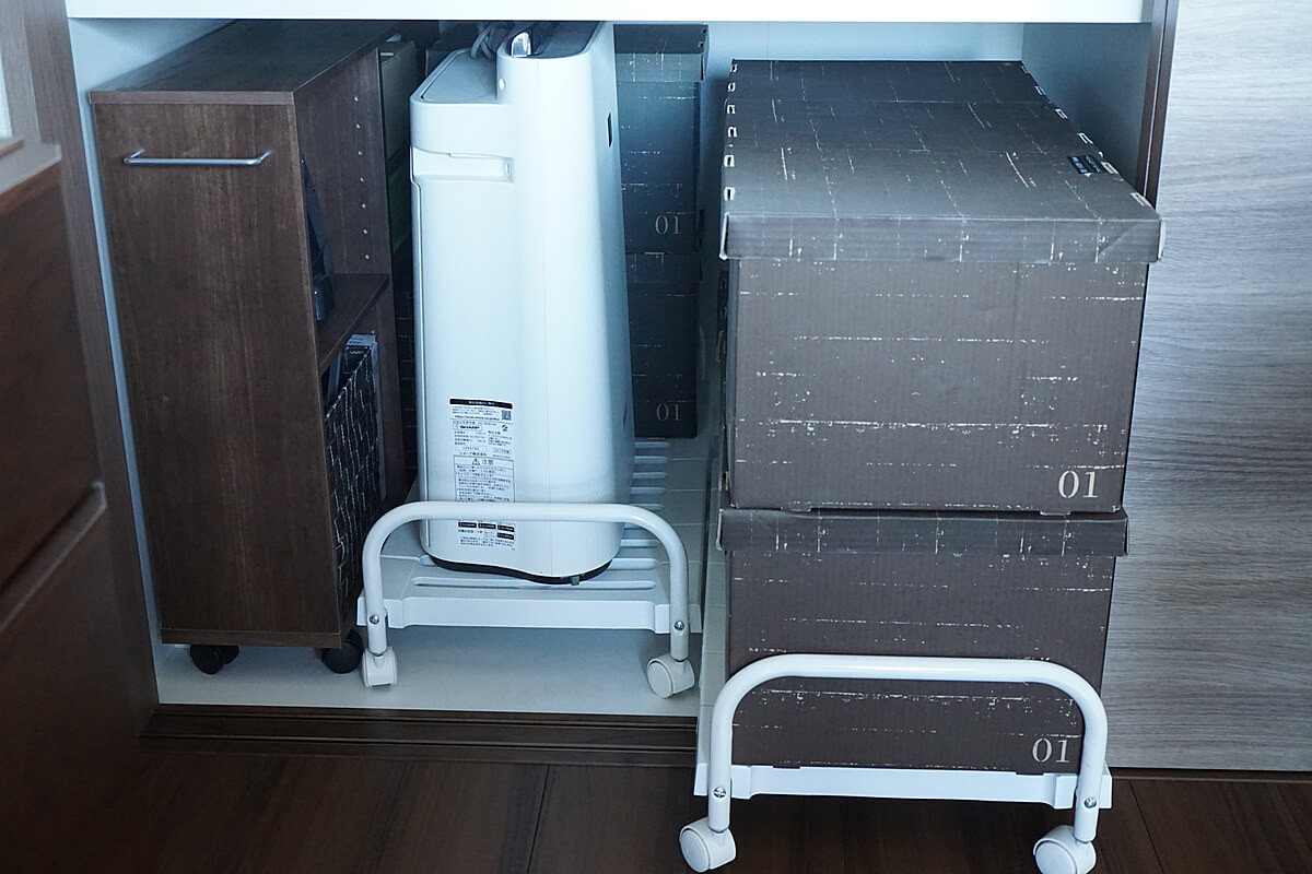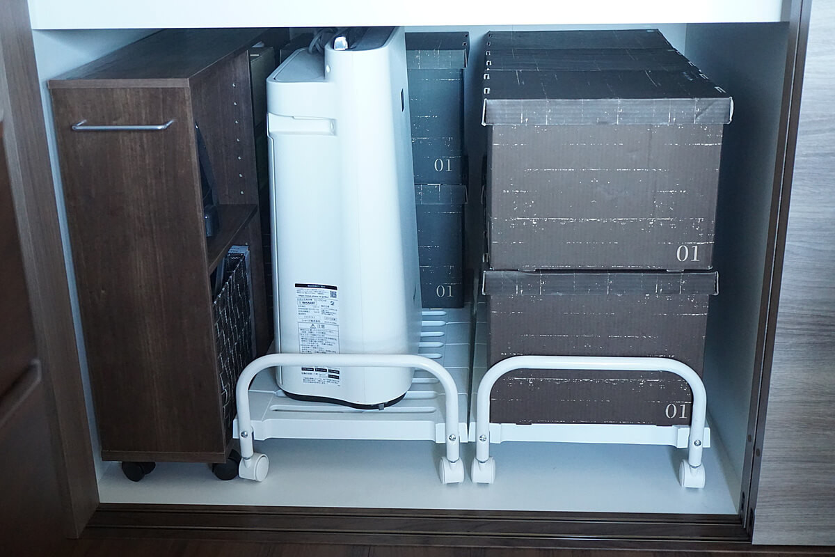 重たいものでも押し入れキャリーに乗せれば片手で軽々引き出せ、簡単に動かせるので掃除もまめにできます。