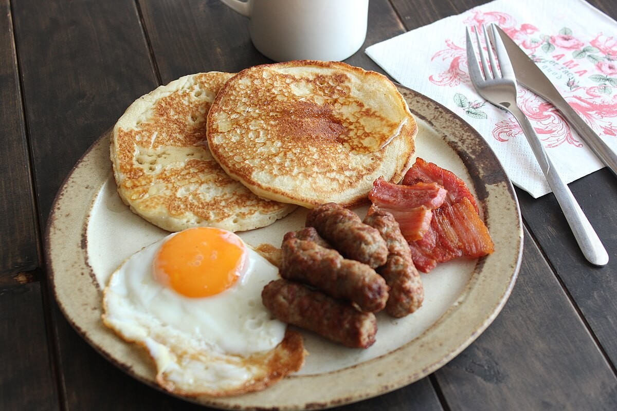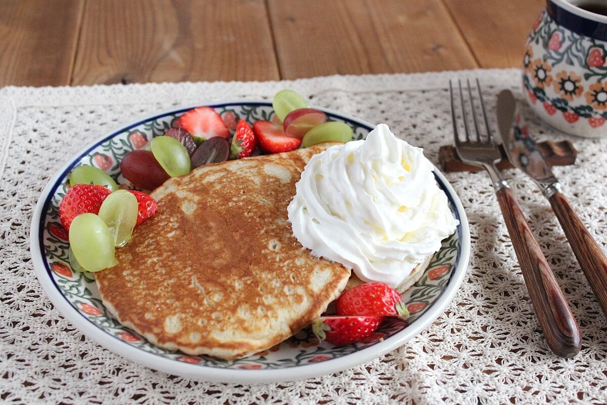 パンケーキの味は、ほんのり甘い程度なので、食事系でも、そしてもちろん甘い系でも大丈夫です!