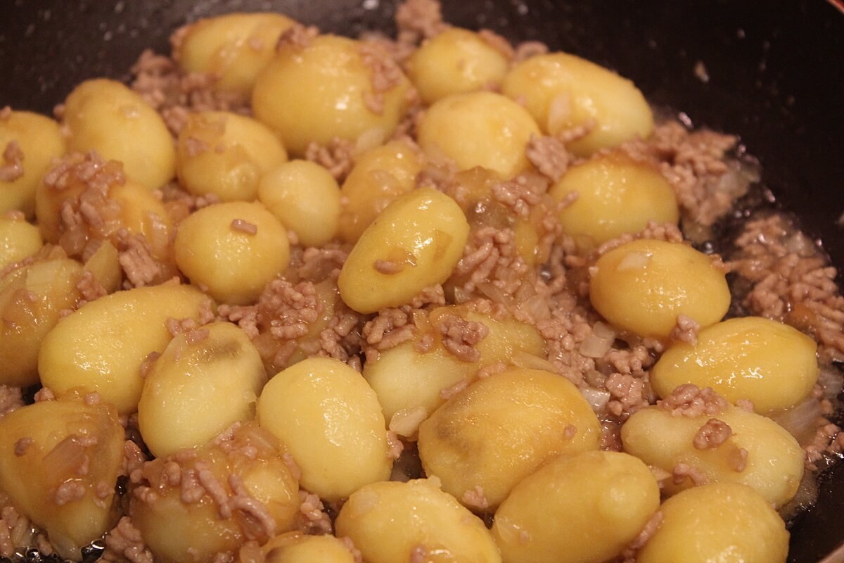 お醤油ベースで味付けした、フライパン1つでできる肉じゃが風の1品をご紹介します。