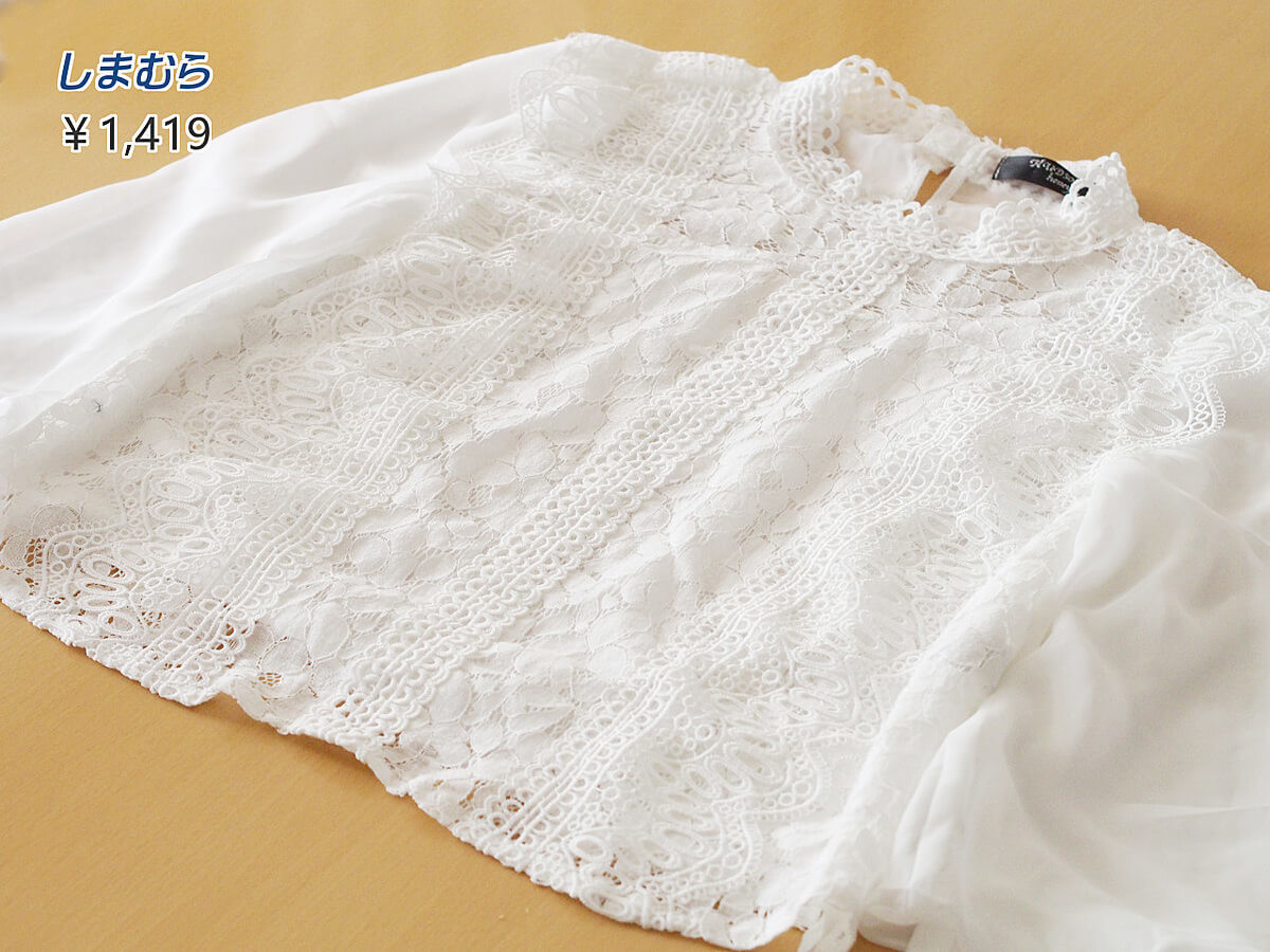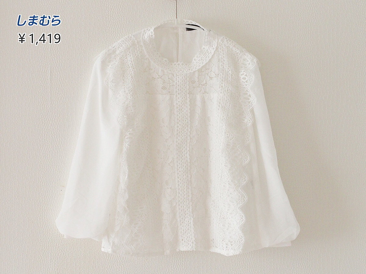 レースをたっぷりとあしらって、華やかに仕上げたブラウス。