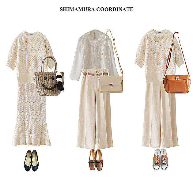 透かし編みが凝った印象で、そのまま着るだけでサマになるのが嬉しいポイント。