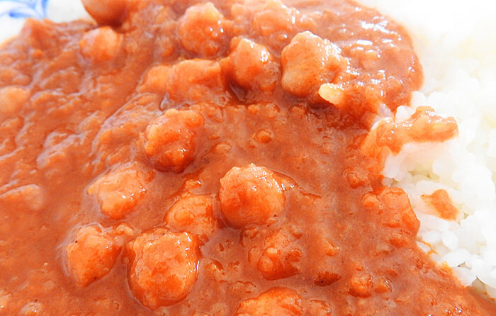 しかし、ひよこ豆があることで辛さが緩和され、全体的には中辛という表現で間違っていないかなと思います。