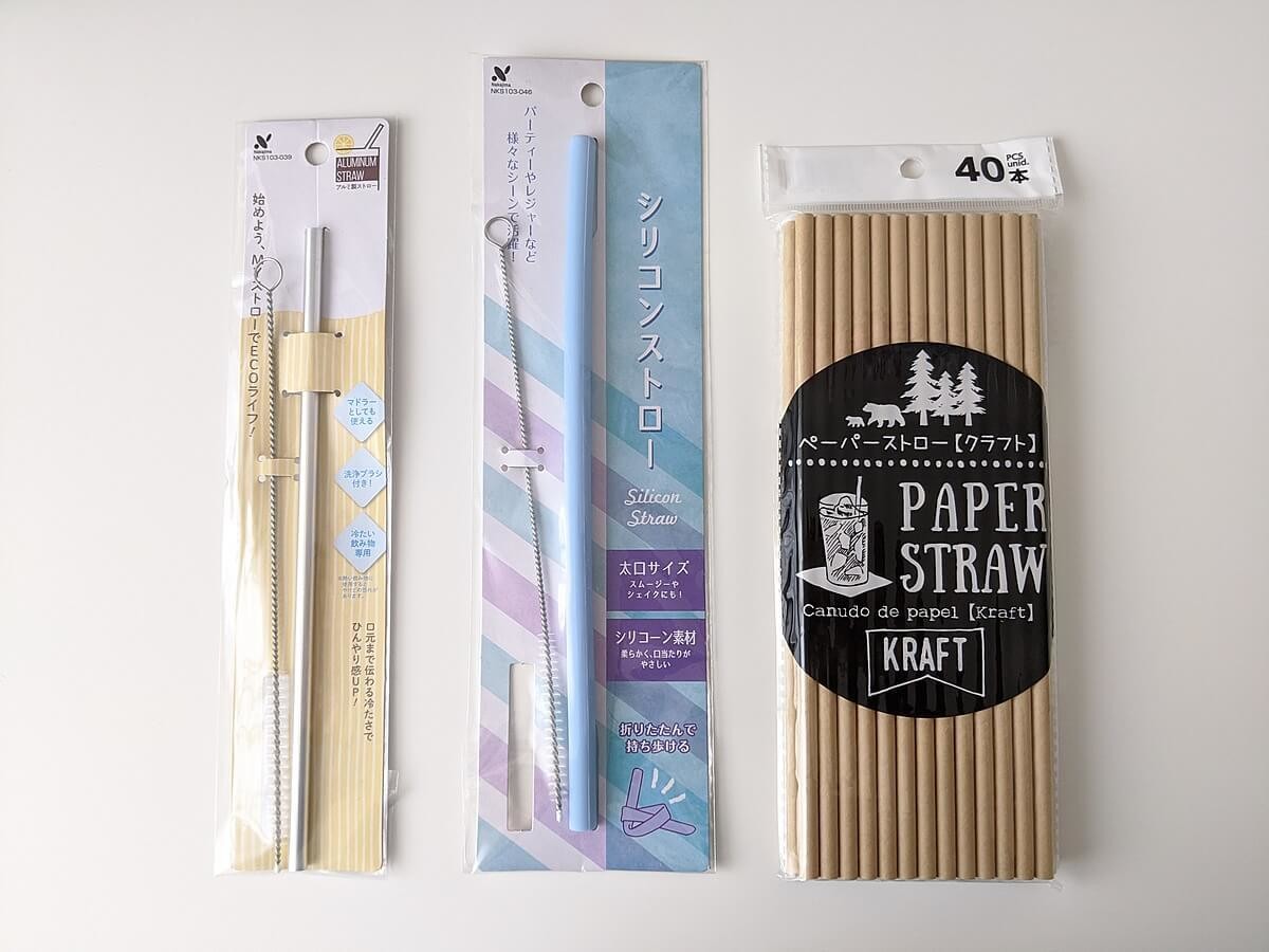 私がマイストローに選んだのは100均のストロー。 プラスチックや紙のストローは見たことがありましたが、探してみるとアルミやシリコンもあってバリエーションが豊富です。