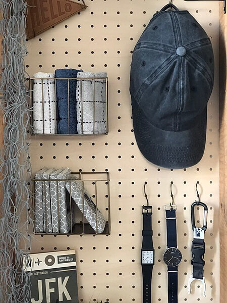 ついつい忘れがちなハンドタオルやポケットティッシュ。玄関スペースに置いておけばお出かけの時にサッと取れて便利です! 時計や帽子などの小物も、ディスプレイも兼ねて見せる収納にぴったり。