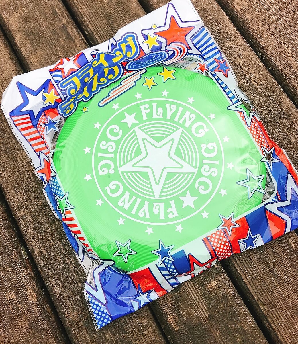 こちらはフライングディスクというその名の通りディスク型のいわゆる“フリスビー”です。実際に投げてみると、想像よりも飛びません!(苦笑)