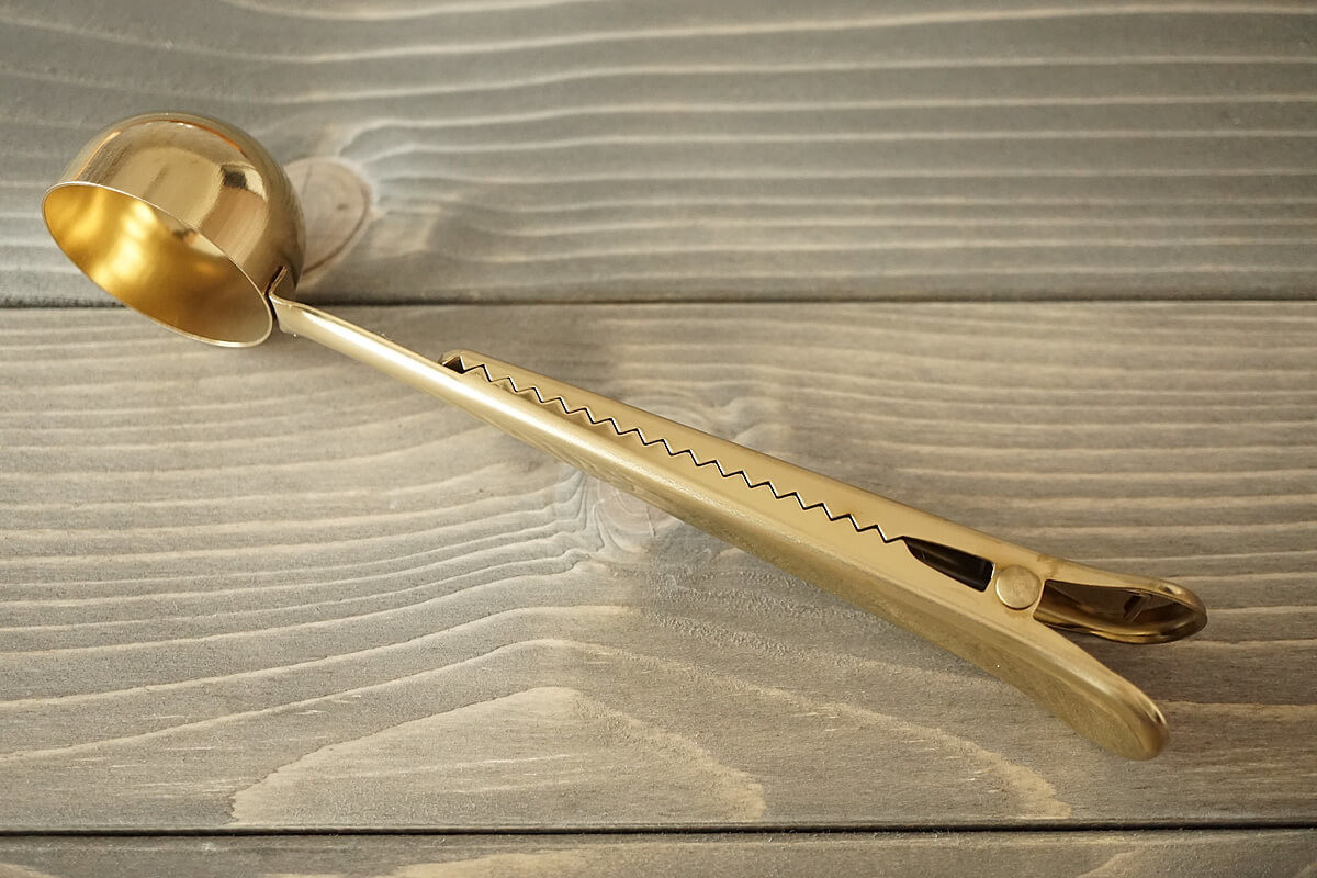 我が家ではコーヒー豆専用のスプーンとして使用しており、袋も止めることができるのでとても重宝しています。