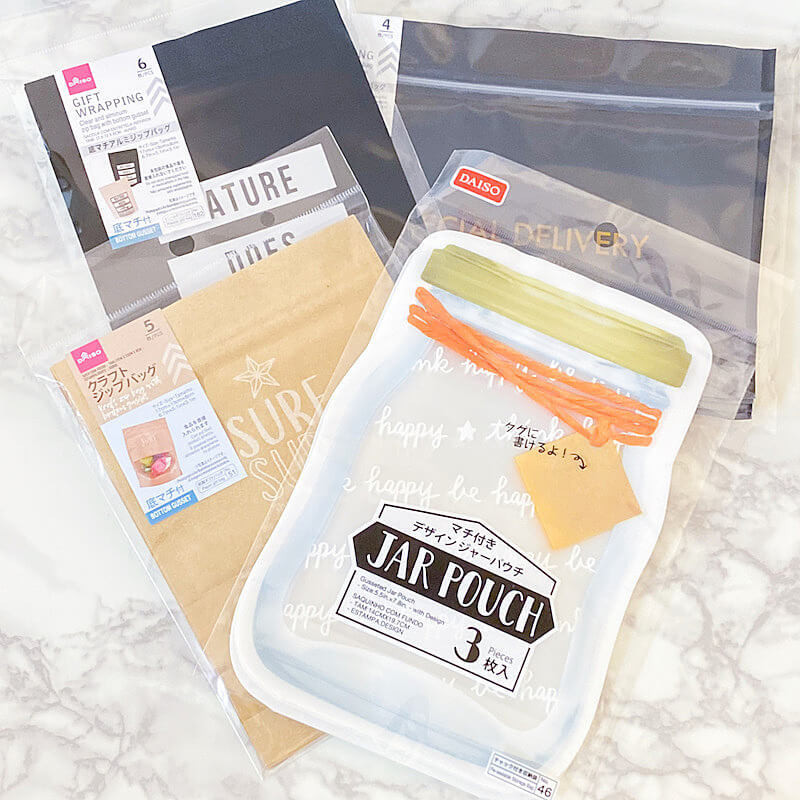 今回は、見た目もおしゃれで、つい集めたくなってしまうダイソーのジップバッグをご紹介します。
