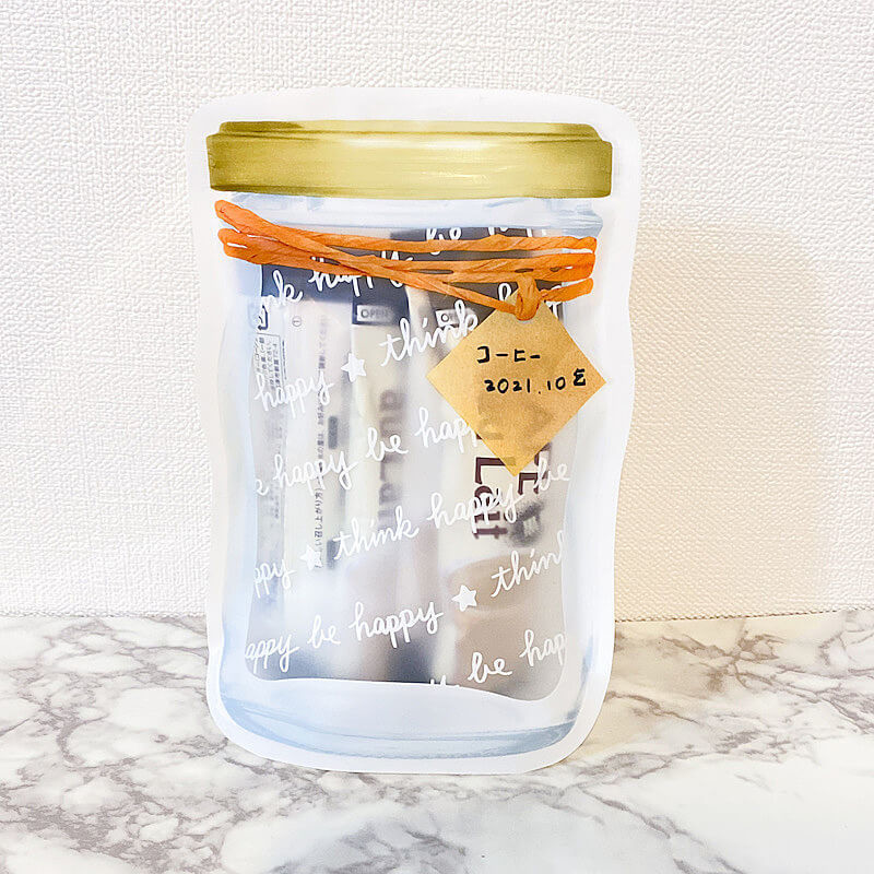 こちらは、自宅に保管してある紅茶や、スティックタイプのインスタントコーヒーなど、賞味期限を記載して入れるととっても便利!