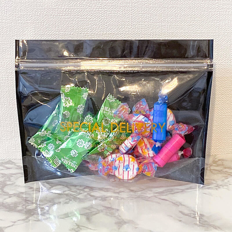 今回はチョコレートを入れてみましたが、ちょこっと中が見えるのでおしゃれでカラフルなお菓子を入れても映えそうです。
