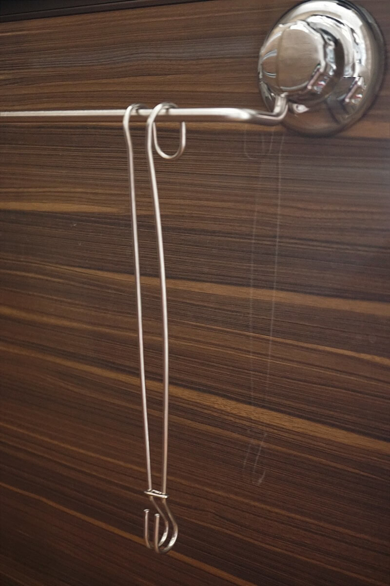 使用方法は同じですが、無印良品のものは持ち手側の柄の先端が丸型なので、S字フックなどにひっかける必要があります。