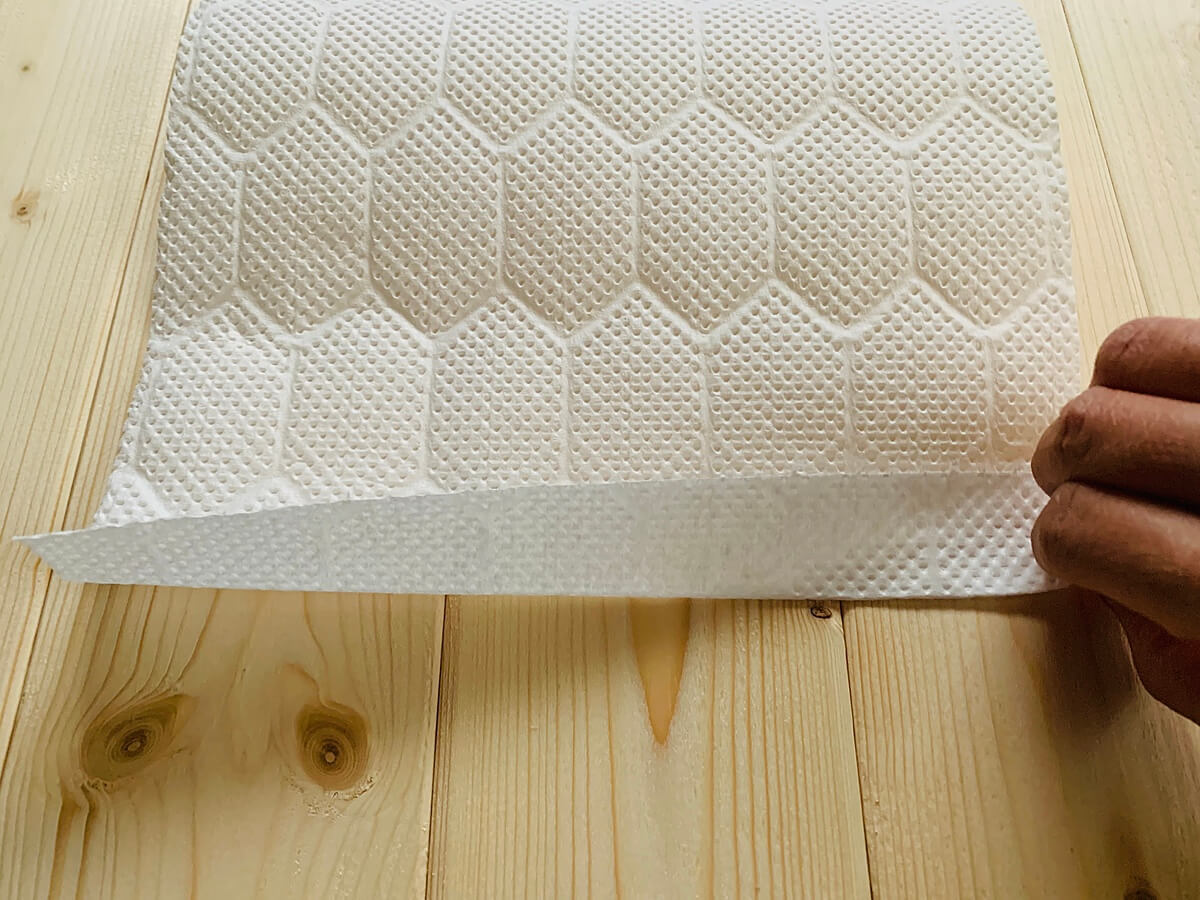 まずはキッチンペーパーを蛇腹に折っていきます。