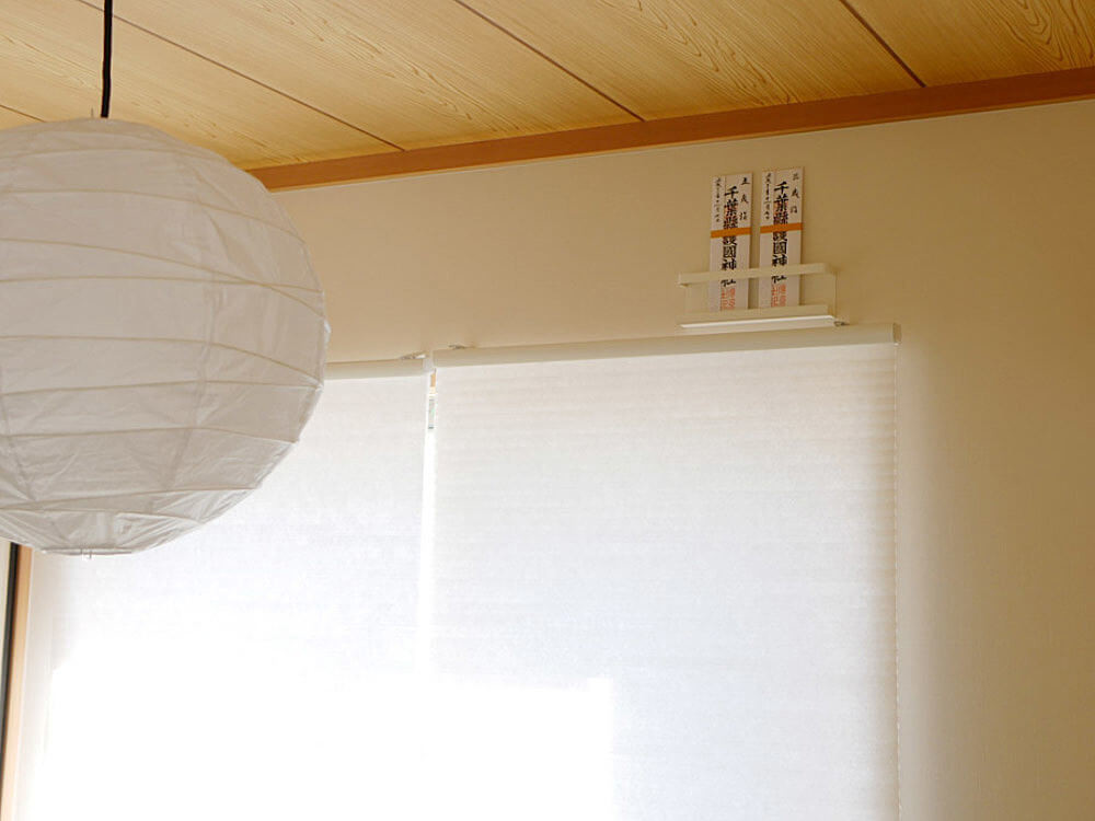 和室の窓枠の上のデットスペースも立派な神棚スペースに変身! コンパクトなサイズ感なので圧迫感を感じることもありません。
