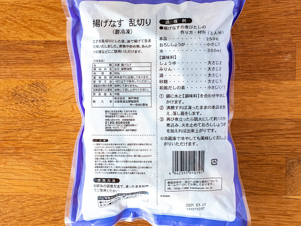 業務スーパーの冷凍野菜「揚げなす 乱切り」