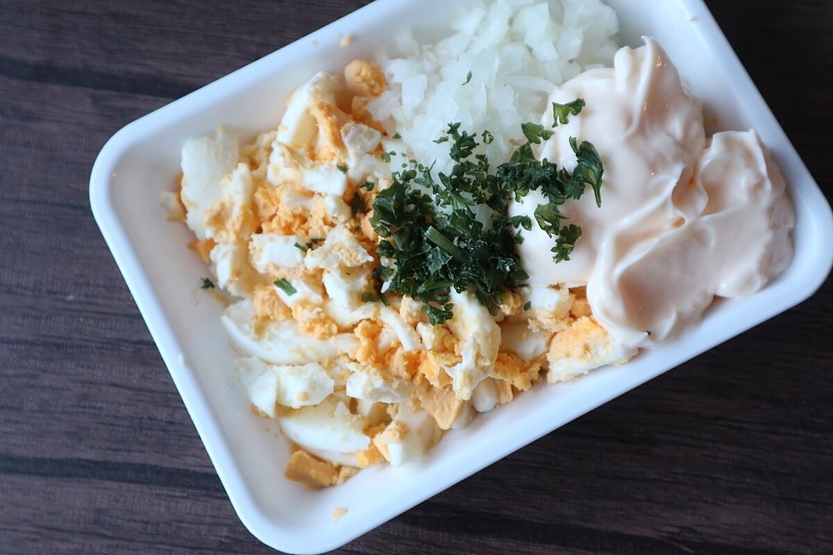 タルタルソースの材料は、すべて合わせて、混ぜるだけで完成。