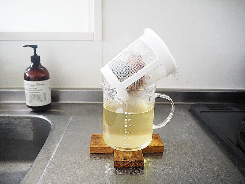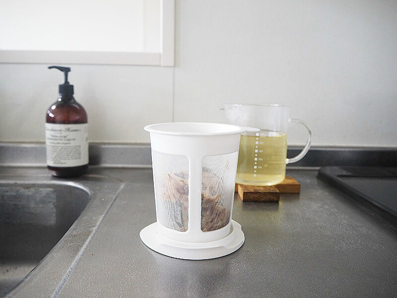フタは裏返すとストレーナー置きに早変わりしますよ。