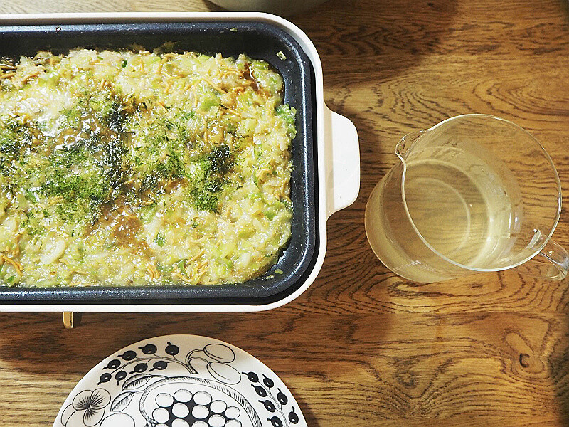 もんじゃ焼きに必要な出汁は、いつもは粉末だしを水で溶いて作っていましたが、このだしポットで作る出汁を使えば味に深みが出て、粉末だしとはひと味違うもんじゃの仕上がりに。