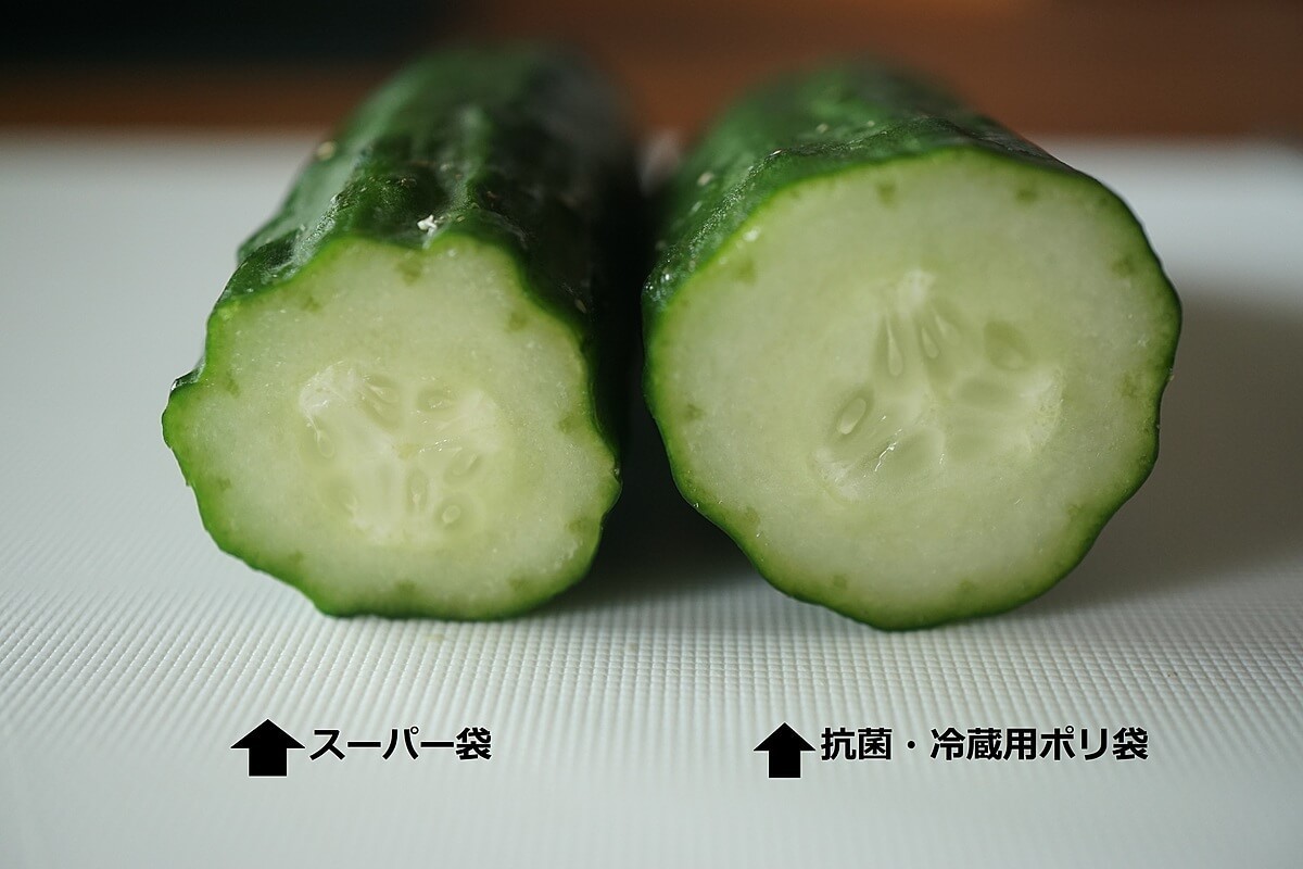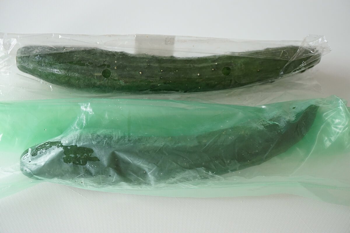 冷蔵用ポリ袋の効果がわかるようにきゅうりで検証してみました。
