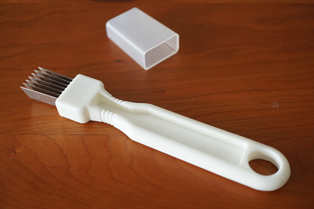 白髪ねぎを作るほかにも、煮物を作るときにこんにゃくや大根の隠し包丁としても使用しています。