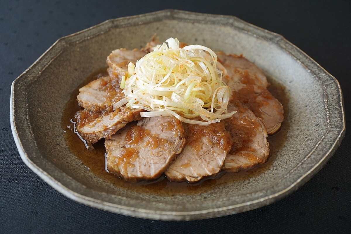 白髪ねぎをゴマ油と一味であえ、チャーシューの上にのせたり……。
