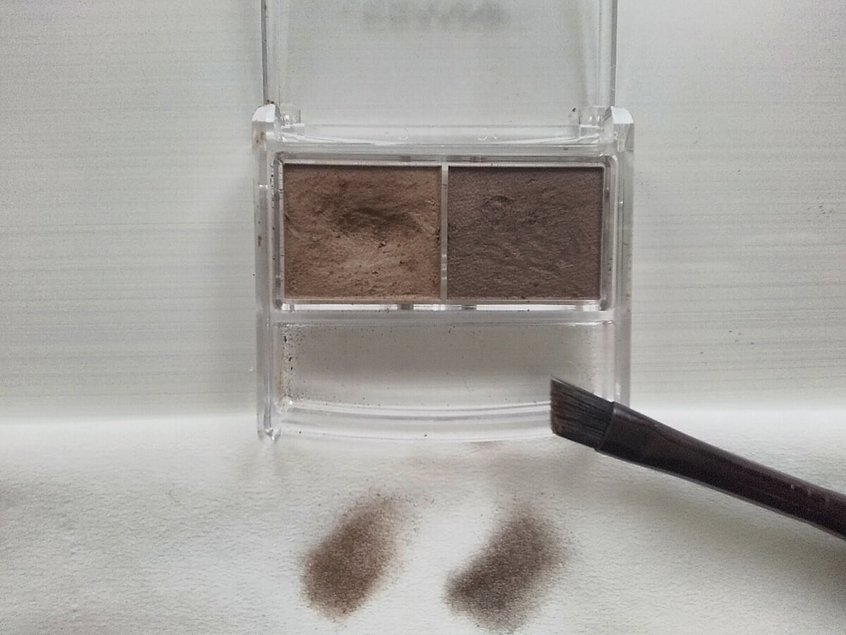 私の場合、濃色の方を使うとクッキリしすぎるので、メインに使用しているのは淡色の方。淡色を眉頭に、淡色と濃色を混ぜたものを眉尻に使用して、ナチュラルに仕上げています。