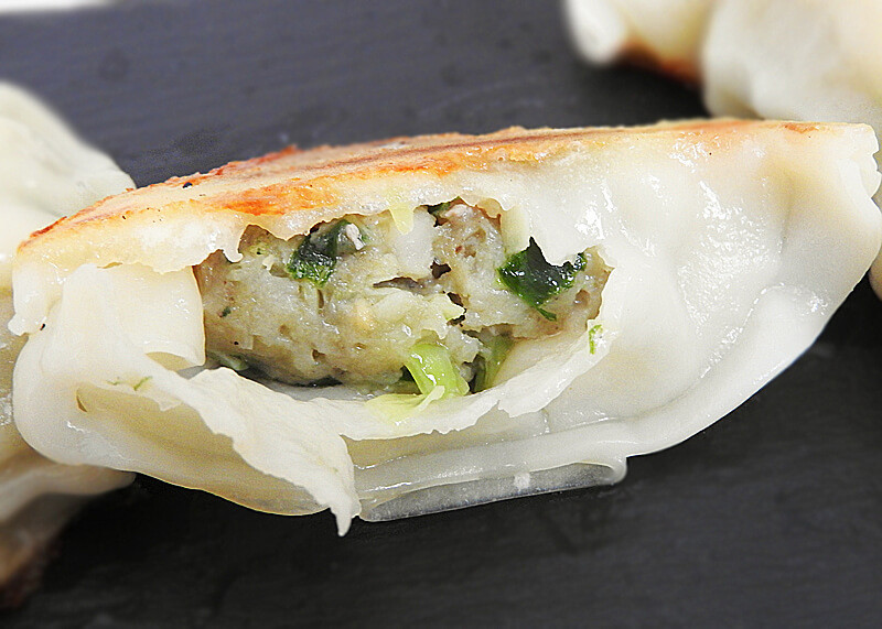 餃子の皮はもっちりとしていてかなり美味しいと感じました。焼き目がついた部分は、パリパリに仕上がって◎。 2歳の娘は、パリパリの部分だけを狙って食べる始末……。