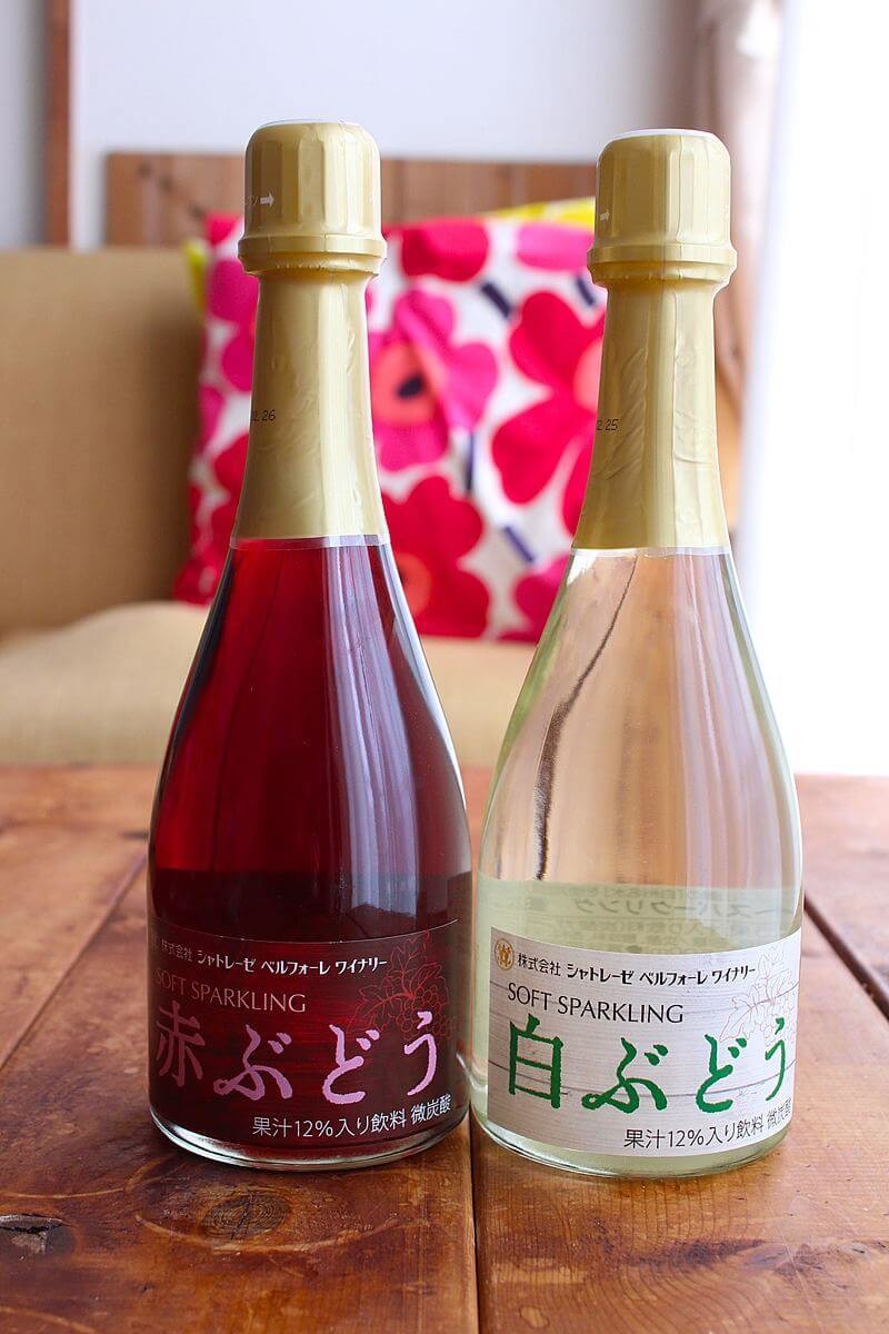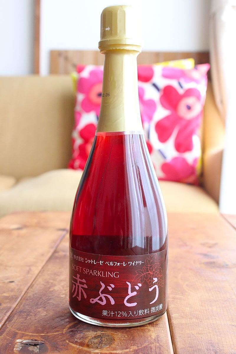 赤ぶどう果汁と、南アルプス山麓の「白州名水」が使われています。果汁感たっぷりで風味がよく、後味のキレも◎。見た目も華やかで、本物のワインそっくりなので、すぐ大人と同じものを選びたがる子どもウケが抜群です(笑)。