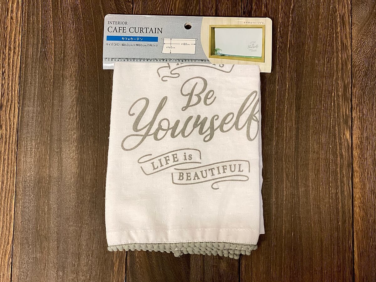 こちらはセリアで見つけた「カフェカーテン」。こちらも、なんと「綿100%」でした!