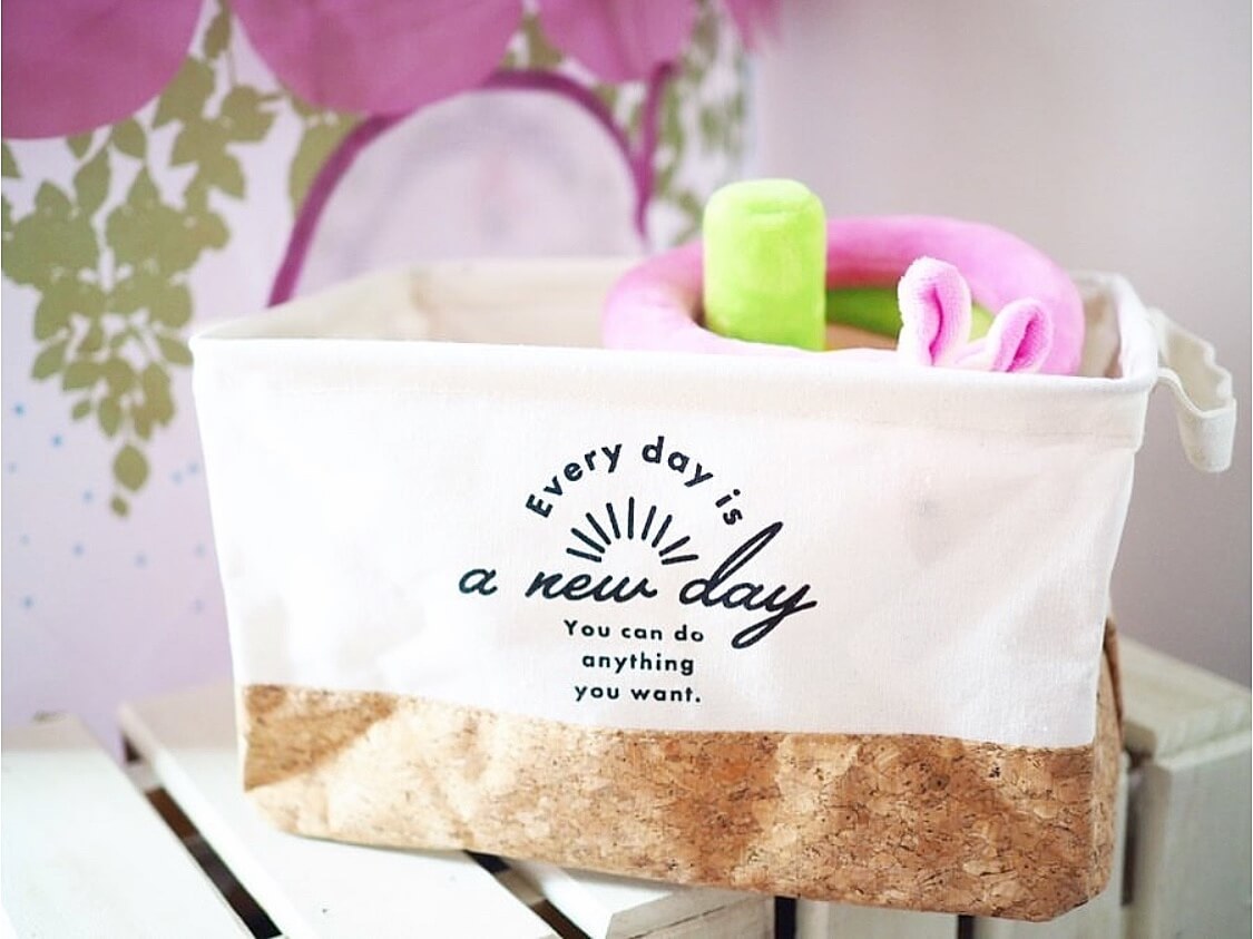 布製の収納ケースはナチュラルで、見える場所に置いていてもおしゃれです。