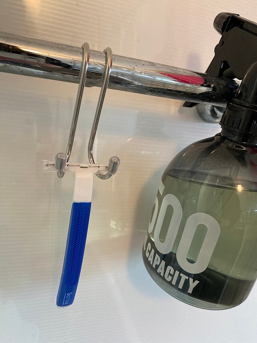 バスグッズを吊り下げるのはもちろん、わが家はシェーバースタンドとして使用中。