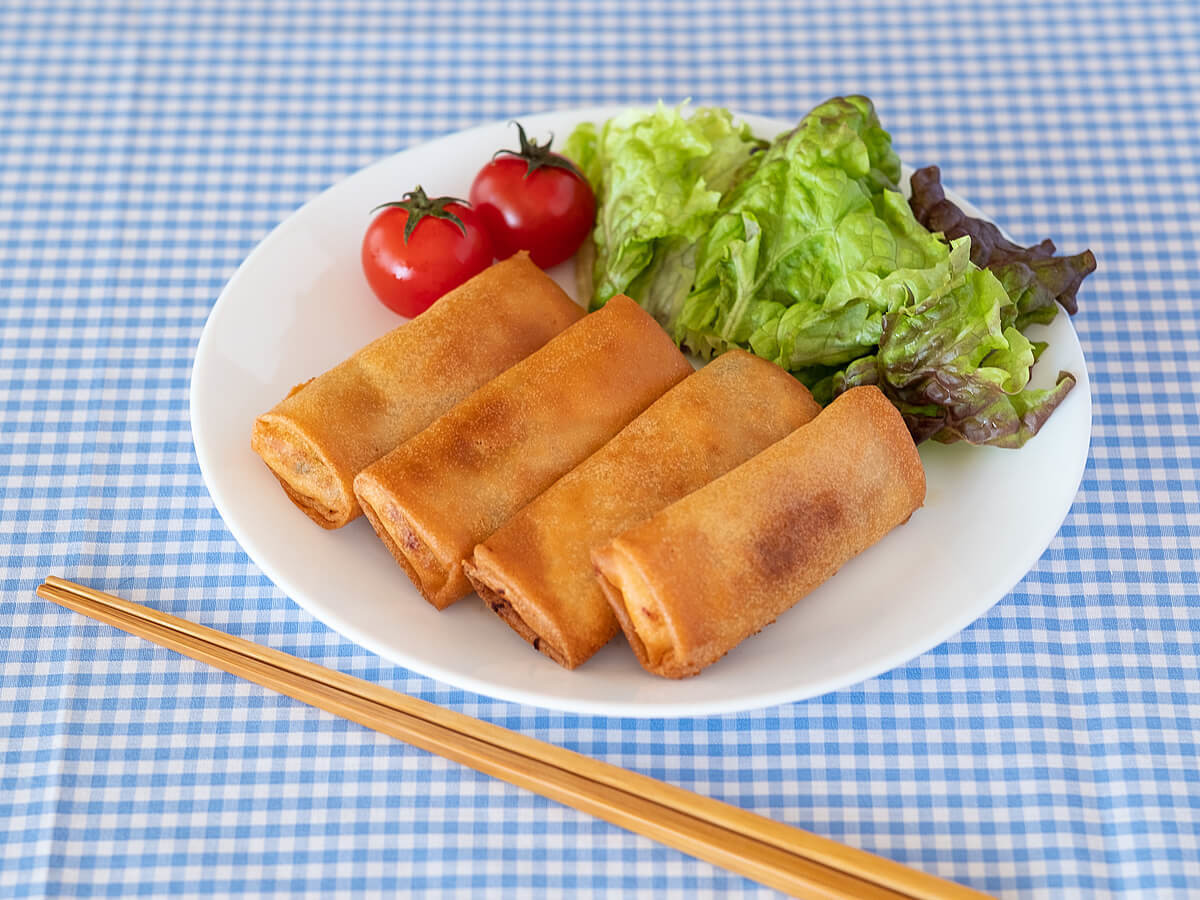 1本1本しっかりとした大きさがあり、カラリと揚げた春巻きを野菜と一緒に盛り付ければ、あっという間に夕食の1品が完成します。